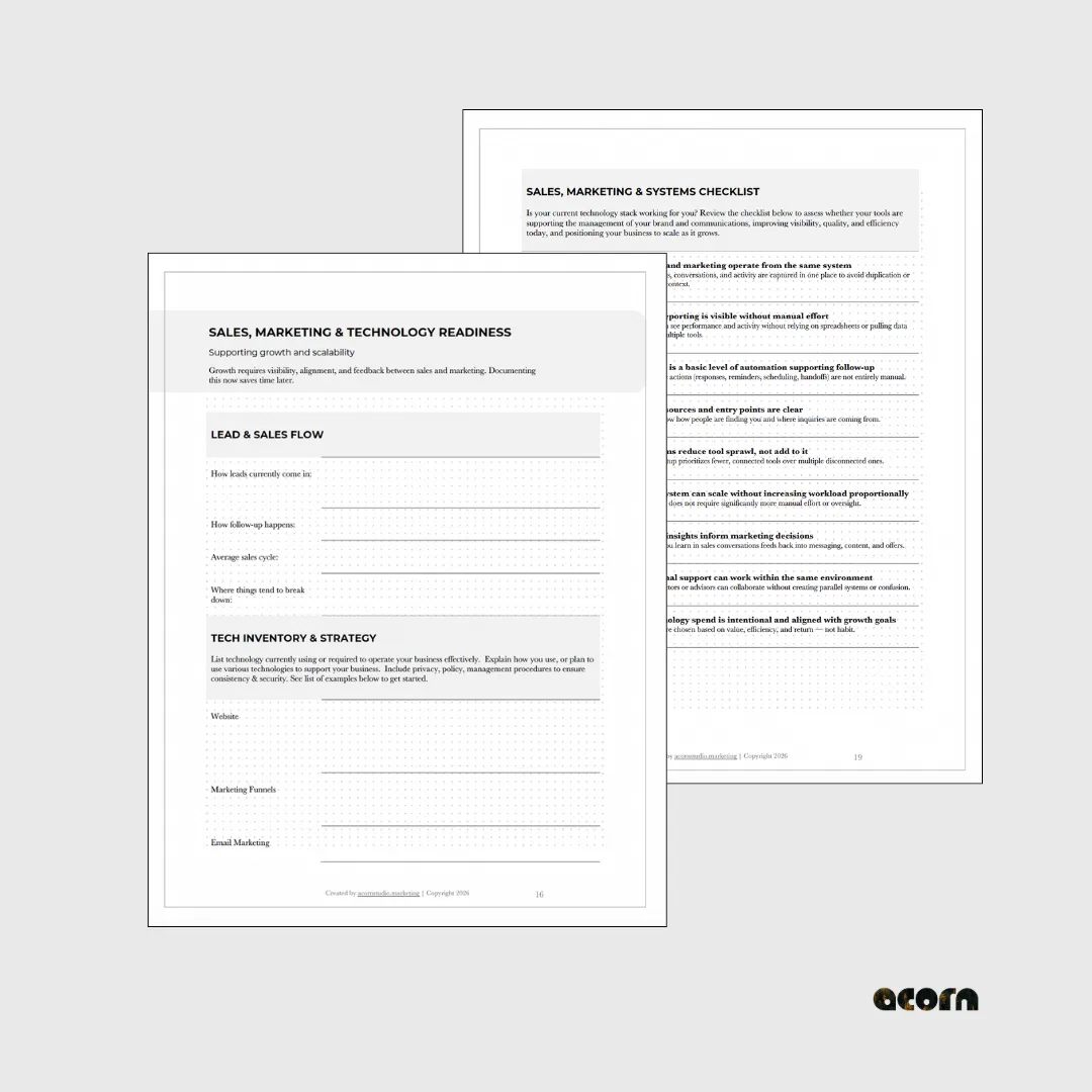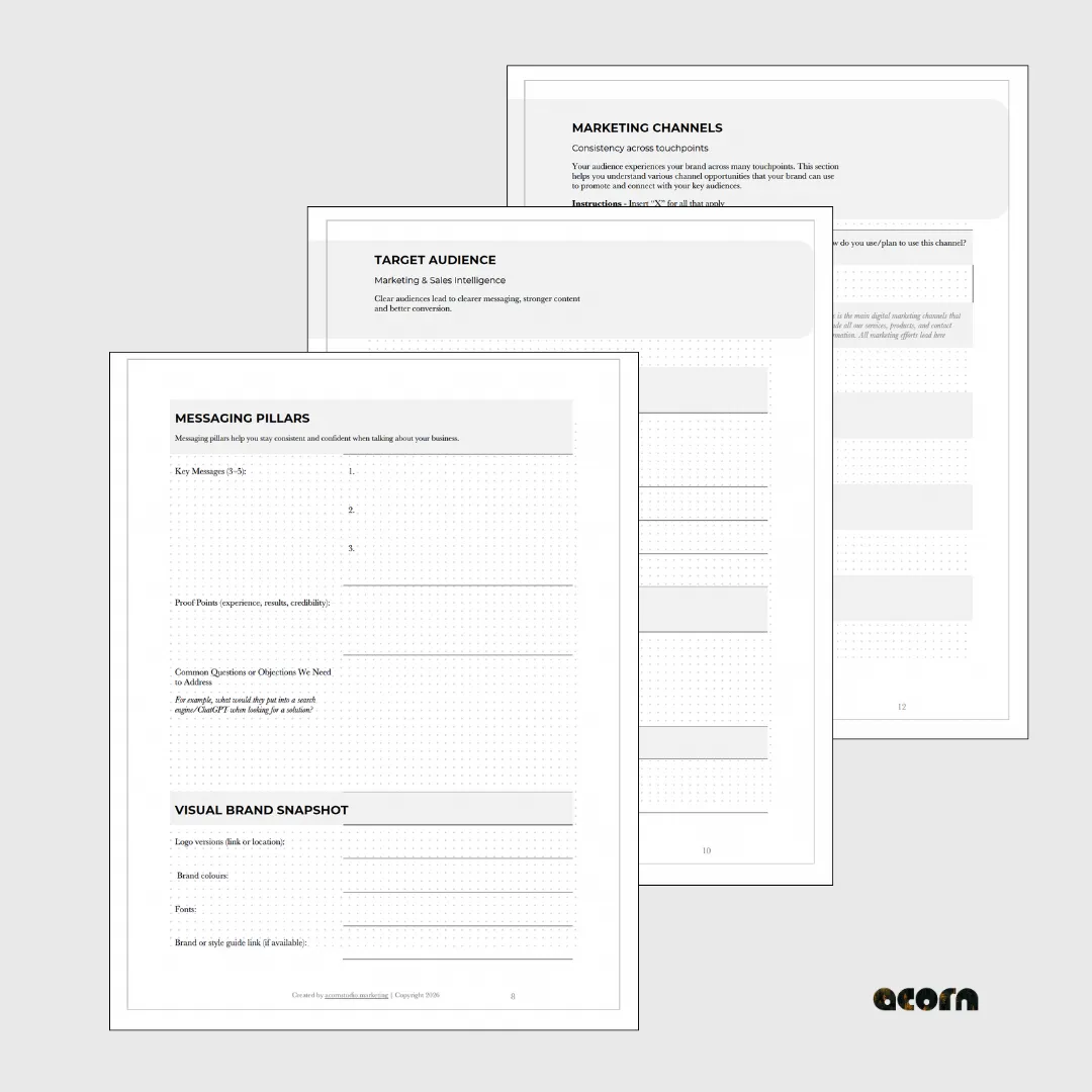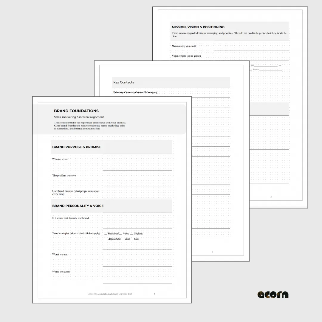 Reflects the same foundational information Acorn Studio Marketing uses when onboarding clients